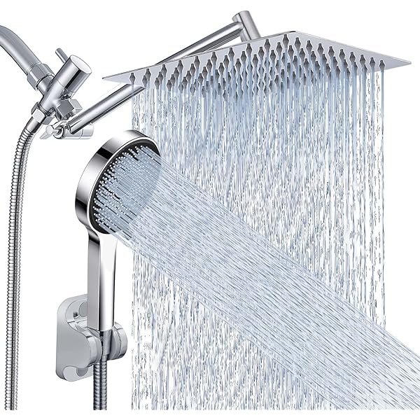 Shower Head, Rain Shower Head with Handheld Spray Combo, 10 Inch Adjustable High Pressure Rainfall Shower Head, Dual Showerhead Set with Extension Arm and 60 Inch Long Shower Hose (Silver)